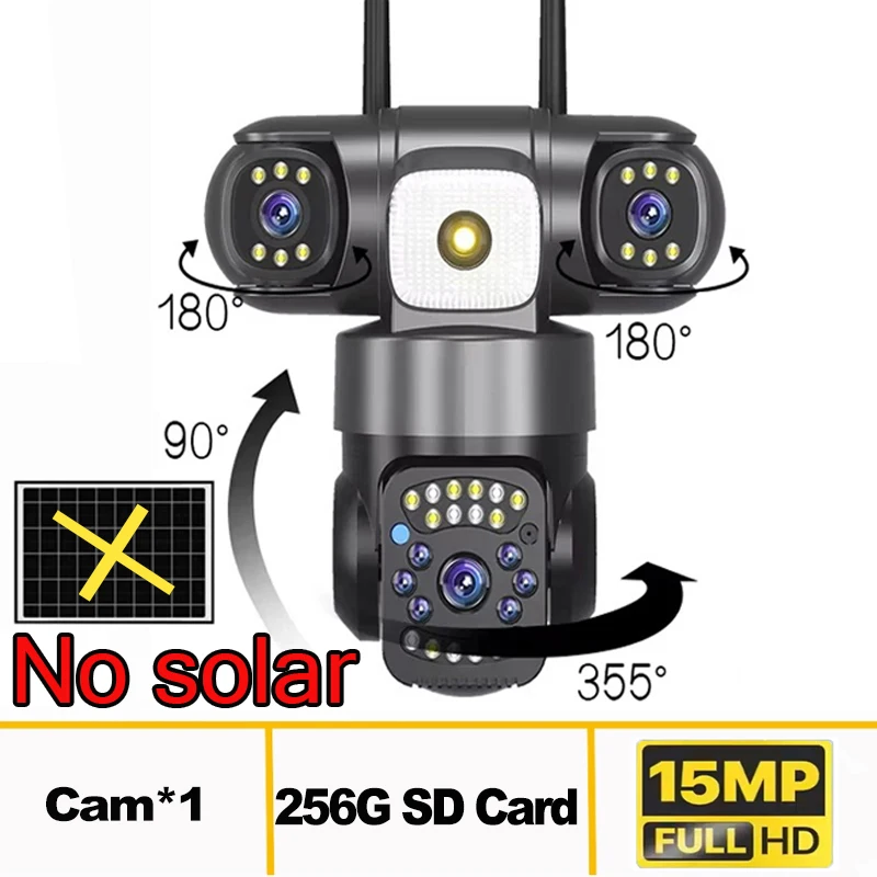 We offer two wifi camera specifications: one with a solar panel and battery, and the other without a solar panel and battery.