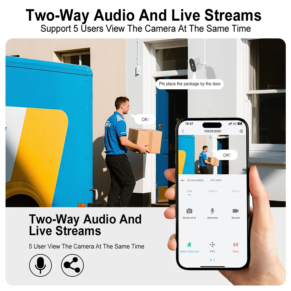 The camera is equipped with a microphone and a speaker, and you can have a conversation with the person on the other end of the camera through the microphone button of the APP, and the sound quality is smooth and clear.