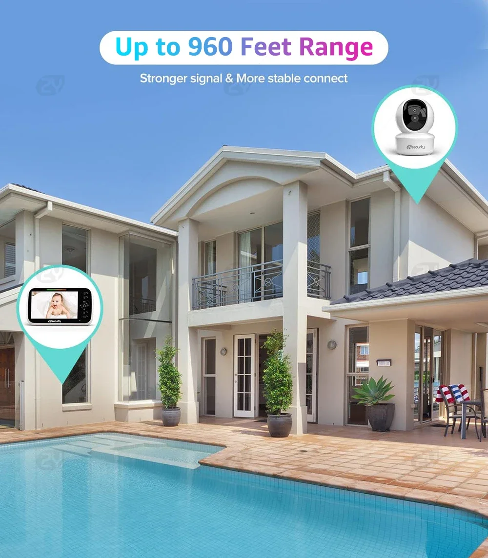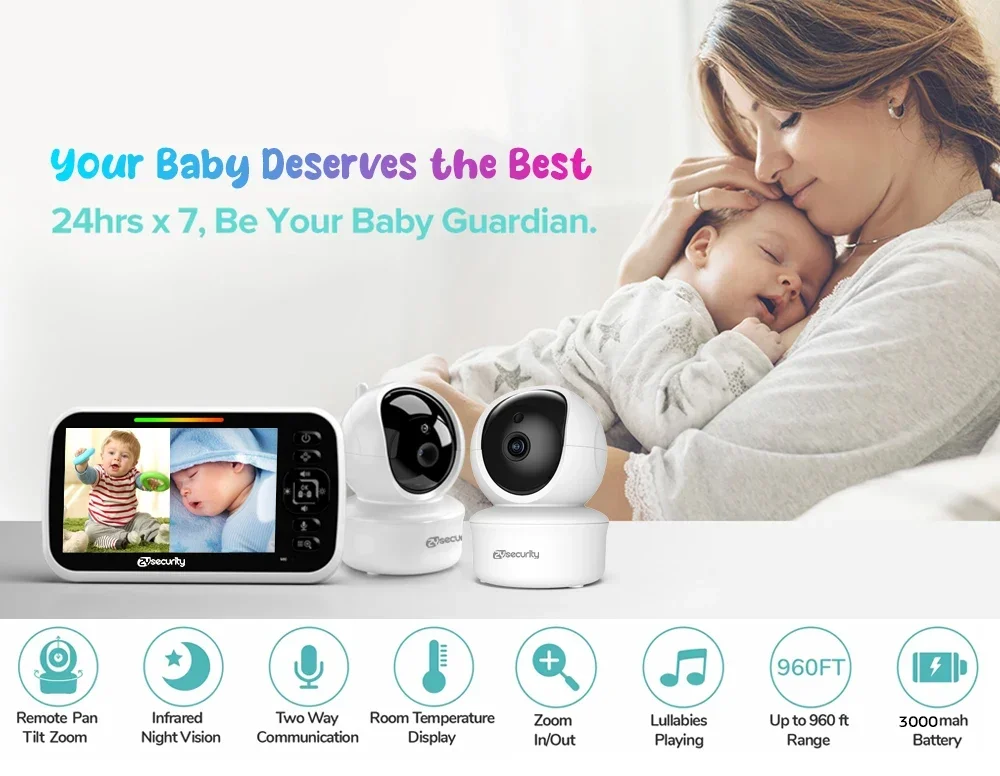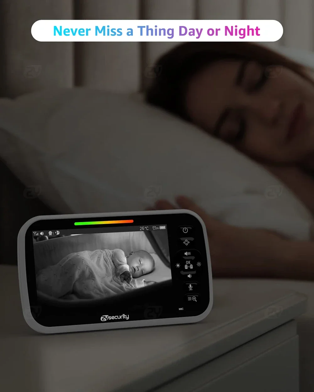 �� 【EASY SET UP & SAFE BABY MONITOR NO WIFI NEEDED】: This is a non-wifi video baby monitor. Adopted advanced 2.4GHz FHSS and digital encryption technology. The data transferred between the camera and monitor is so fast, and you don’t need to worry about hacking risks. Believe me, your baby is safe.