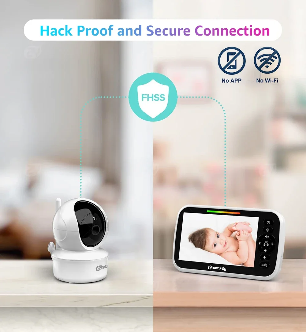 Privacy Protection, this video baby monitor no wifi,Each monitor transmits over a secure internal 2.4GHz channel and FHSS technology, so you can rest assured that you are the only one who can hear and see your baby.