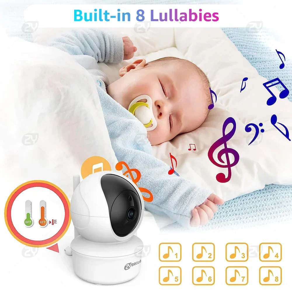 Built-in infrared LED lights on the camera allow you to see clear black&white images on the screen even in a pitch-dark room. The remote control baby monitor can play 8 lullabies, quickly soothe your baby's uneasy emotions, and bring your baby and you a peace of mind.