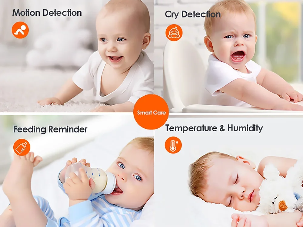 Feature: Multiple Receiver,Intercom,Baby Cry Alarm,Motion Detection,Feeding Time Reminder,Temperature Monitoring,Humidity Monitoring,LCD Display,Power Saver,Portable,Music