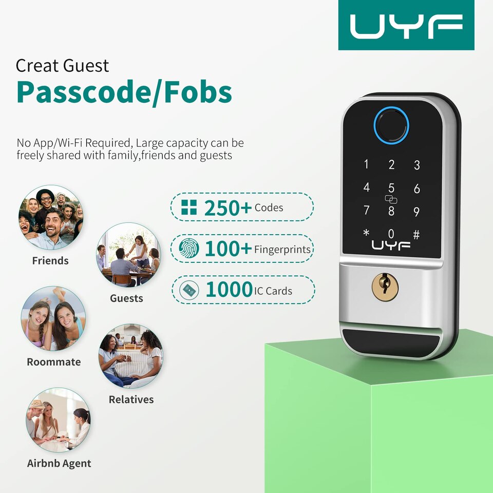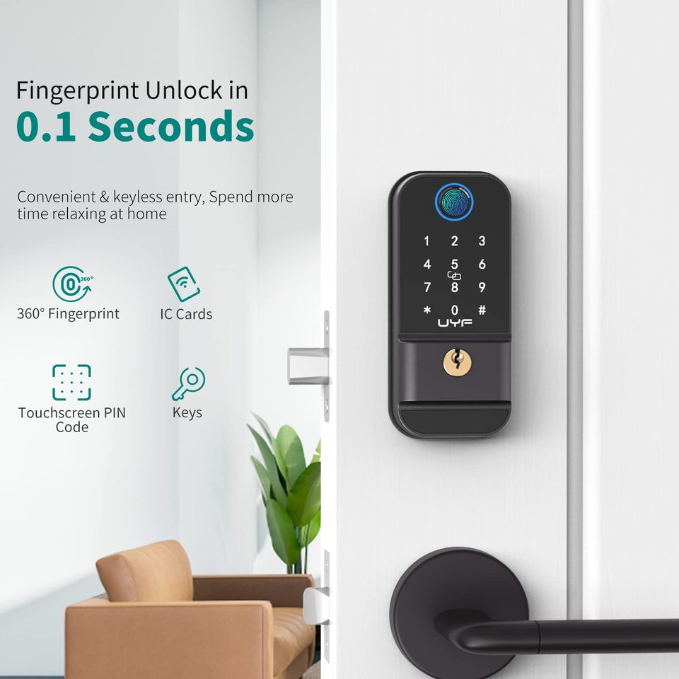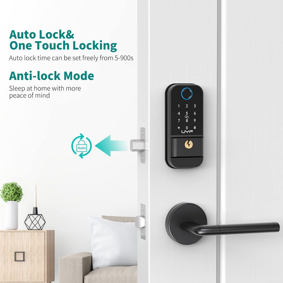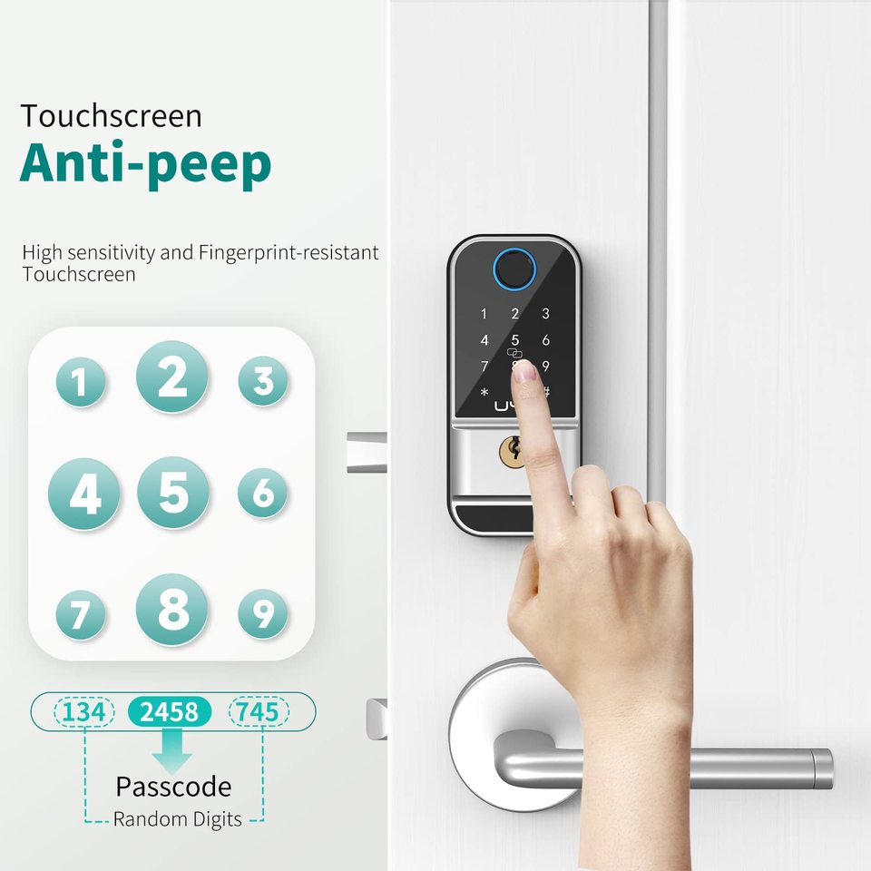 Features: Auto-lock, No Drilling Required, Anti-peep passcode, Smart voice & alerts, IP65 waterproof.