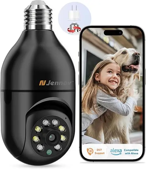Jennov Light Bulb Security Camera, 360°/2k HD Wireless Camera, 2.4/5 Ghz Wi-Fi Light Socket Camera with Auto Tracking, AI Human Detection, Compatible with Alexa for Indoor&Outdoor Home Security