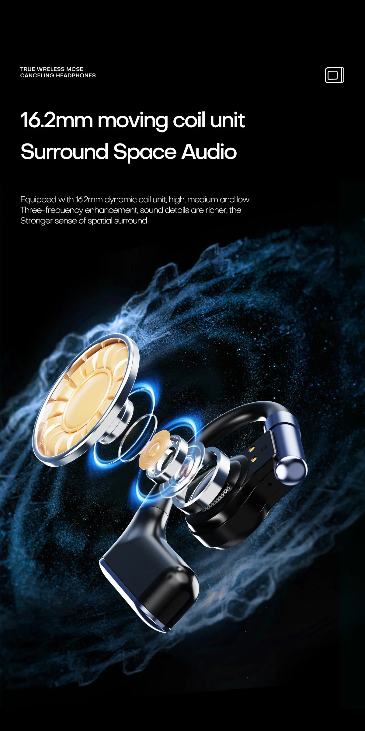 The Bluetooth earphones adopt a hanging ear design, and the composite diaphragm dynamic coil unit makes the sound full and thick, with natural hearing, restoring the authenticity of the audio and the dynamics of the sound. It feels like listening on site, providing you with realistic sound.