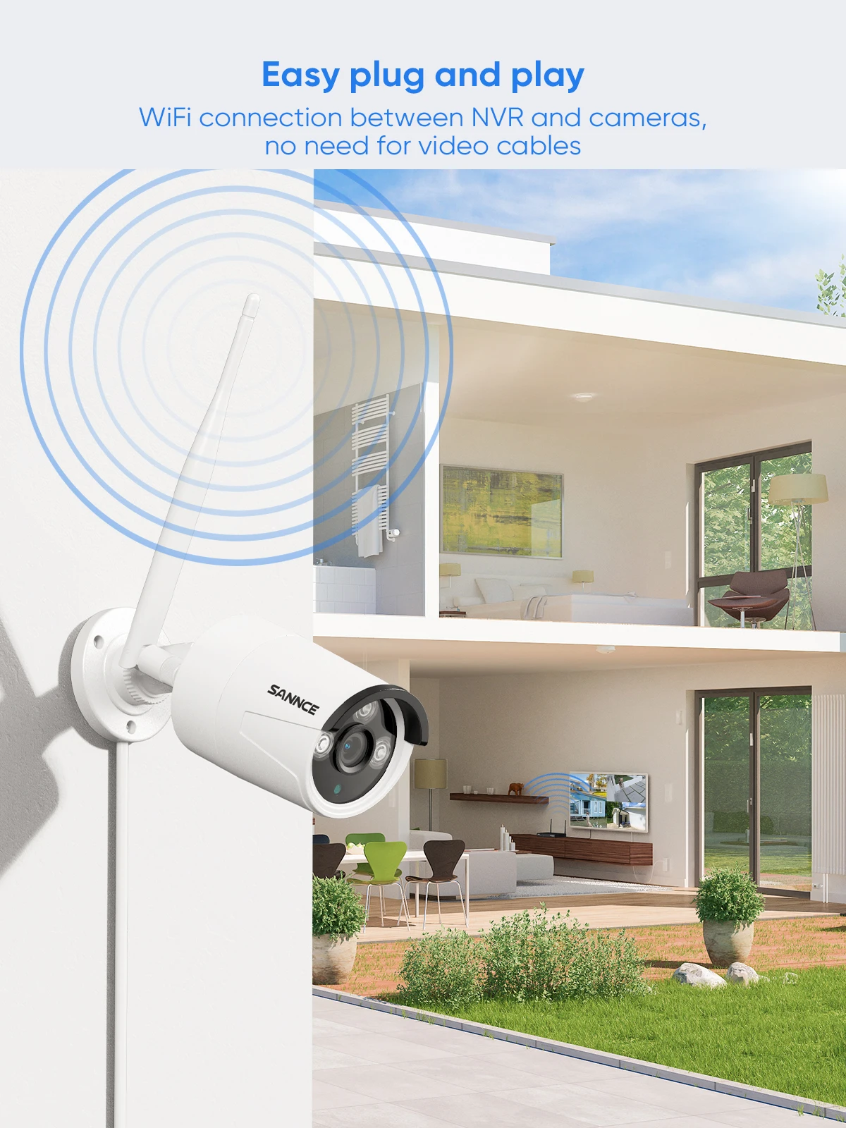 SANNCE 5MP WiFi CCTV System 10CH NVR Two Way Audio Security Camera System Video Surveillance Kit Outdoor Wireless IP Cameras
