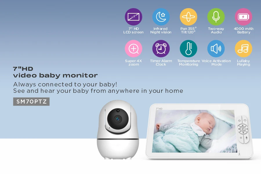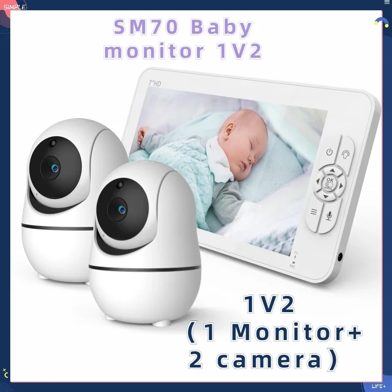SM70 Baby Monitor 7 Inch Wireless With PTZ Camera High Security Camera Night Vision Temperature Monitoring Baby Cry Alarm