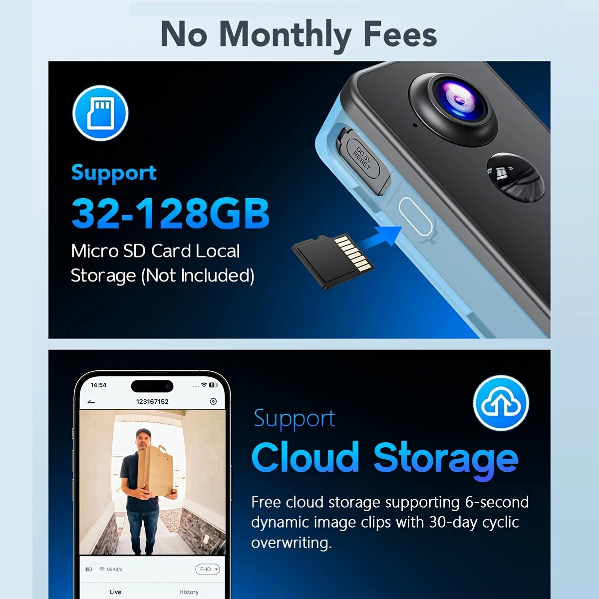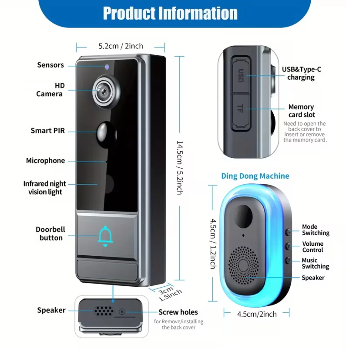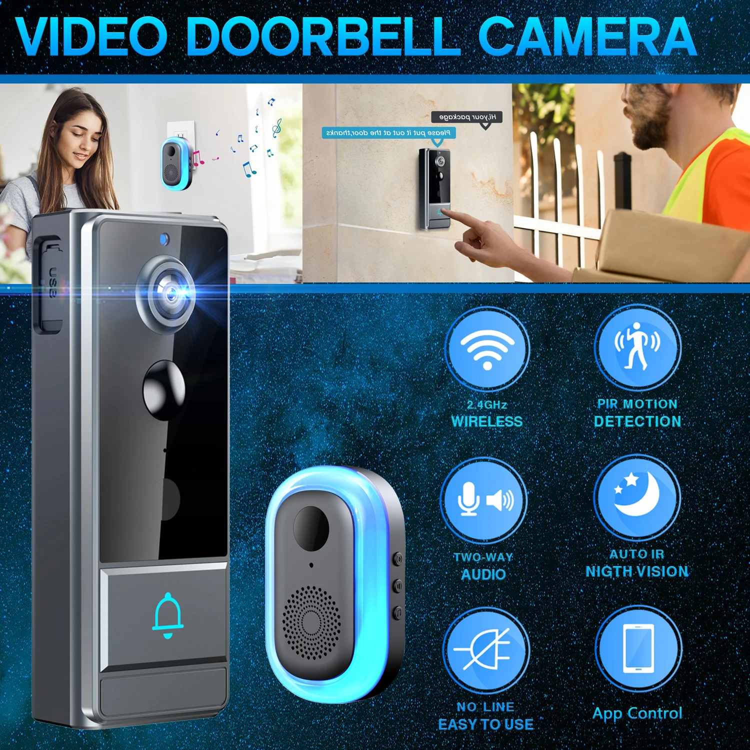 Wireless Smart Video Doorbell, 960P HD Video Doorbell Camera, Home Security WiFi Doorbell Camera, PIR Motion Doorbell