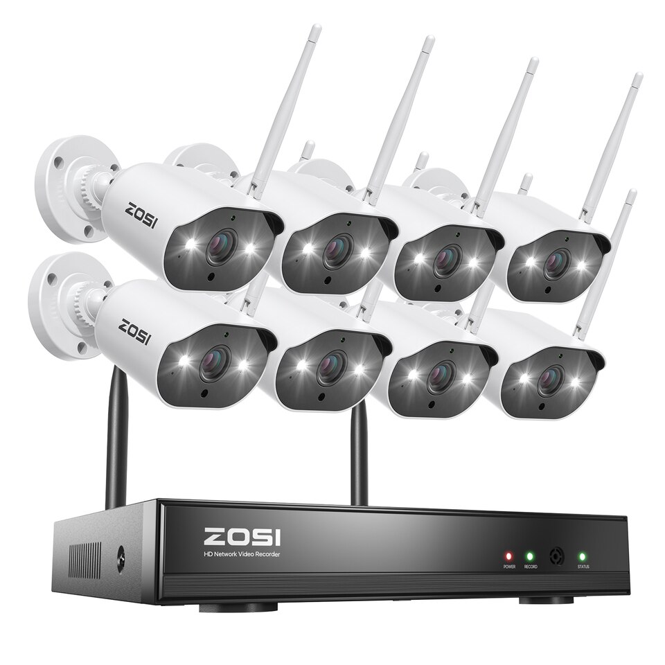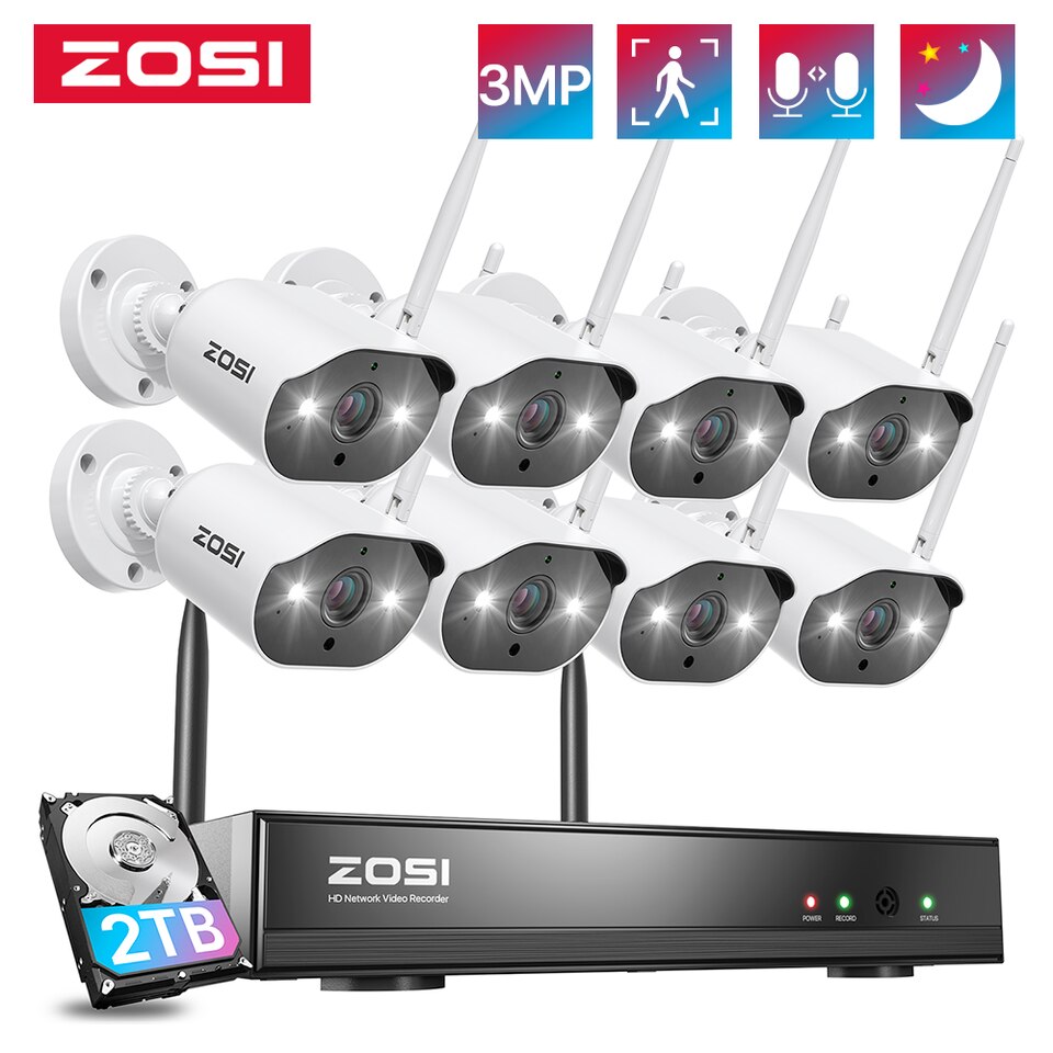 ZOSI WiFi Security Camera System 8CH 2K H265+ Wifi NVR 3MP Outdoor Waterproof CCTV Camera Wireless Surveillance System with Color Night Vision,Light & Siren Alarm