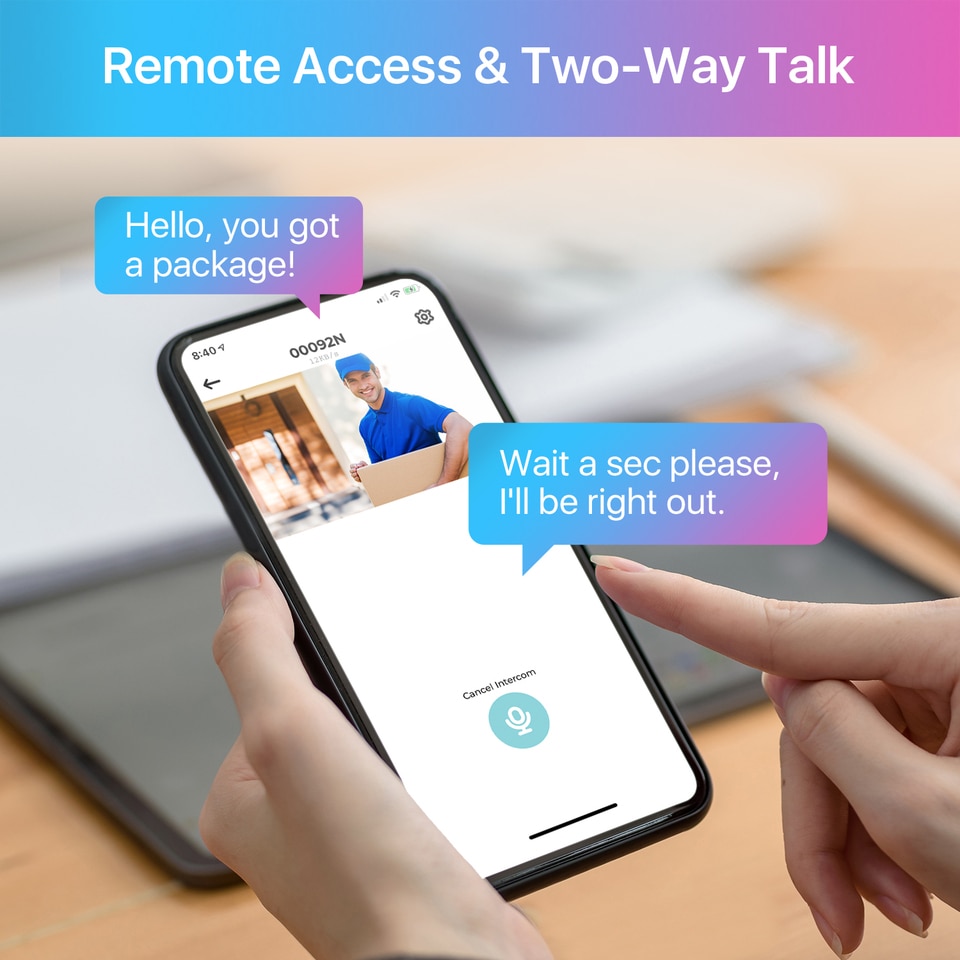 Use two-way audio to respond to guests or warn off the unwanted from anywhere.